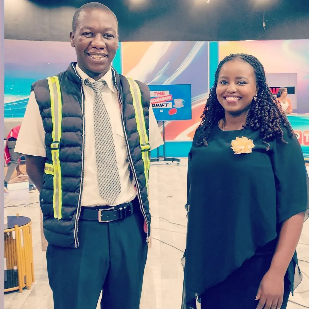 Marion Gachuhi and Owuor Otet Marion Gachuhi (producer) (right) with the Road Safety and Safe Driving Practice founder Owuor Otet at the Look Up Tv studios in November 2021.